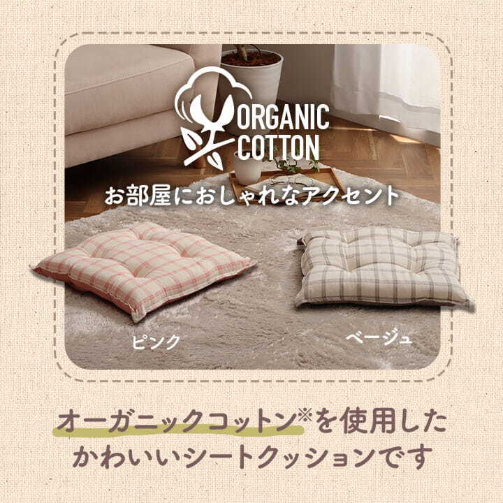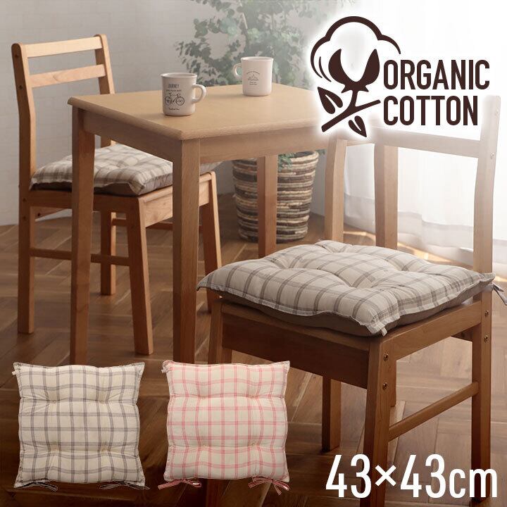 クッション シート 椅子 日本製 オーガニックコットン 綿100% チェック 洗える 約43×43cm