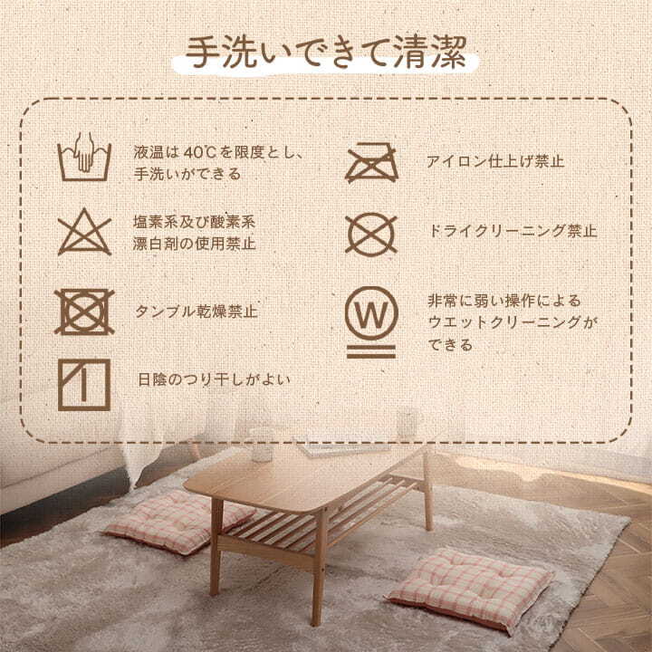シンプルで飽きの来ないデザインで、ダイニングチェア、車のシートなど様々なシーンでご使用いただけるシートクッションです。 ひも付きで椅子に固定できるので、立ったり座ったりする際のクッションのズレを防止します。 日本国内で綿入れ加工を行っており安心の日本製です。 側地にインド綿100%のオーガニックコットンを使用し、ざっくりとした肌触りが特徴で、季節を問わず一年中心地よくお使いいただけます。 手洗いで洗うことができるため清潔にお使いいただけます。